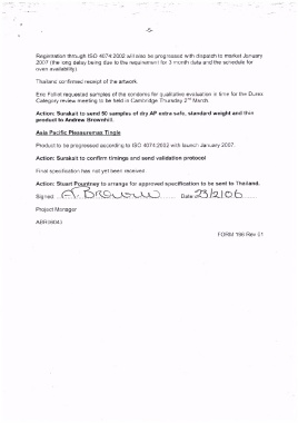 Action: Stuart Pountney to arrange for approved specification to be sent to Thailand