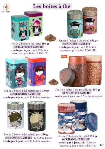 Jeu de 2 boîtes à thé métal 100 gr ref NLG150 : 7.20€ HT