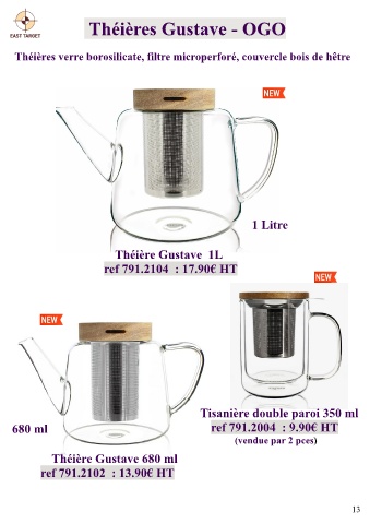 Théières verre borosilicate, filtre microperforé, couvercle bois de hêtre