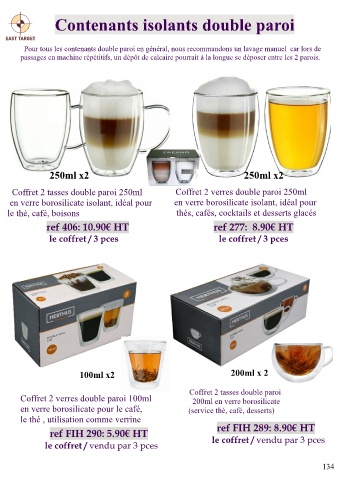 Coffret 2 verres double paroi 100ml 200ml en verre borosilicate