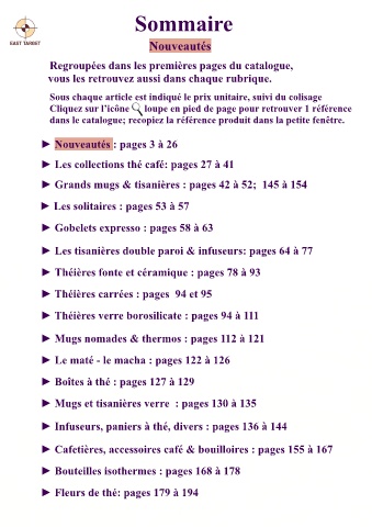 ► Infuseurs, paniers à thé, divers : pages 136 à 144