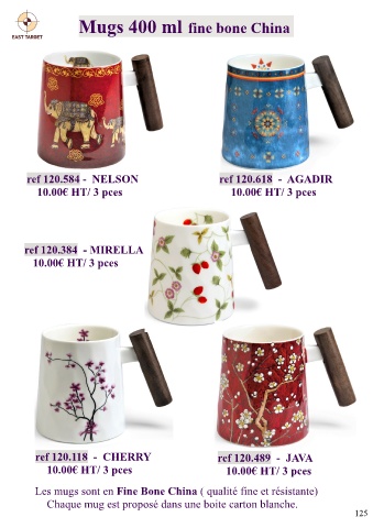 Les mugs sont en Fine Bone China ( qualité fine et résistante)