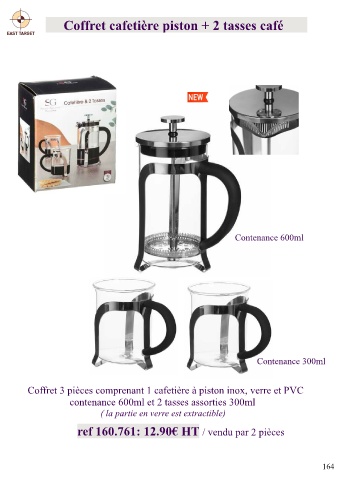Coffret 3 pièces comprenant 1 cafetière à piston inox, verre et PVC