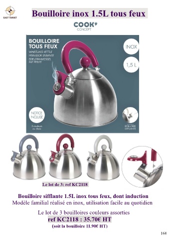 Bouilloire sifflante 1.5L inox tous feux, dont induction