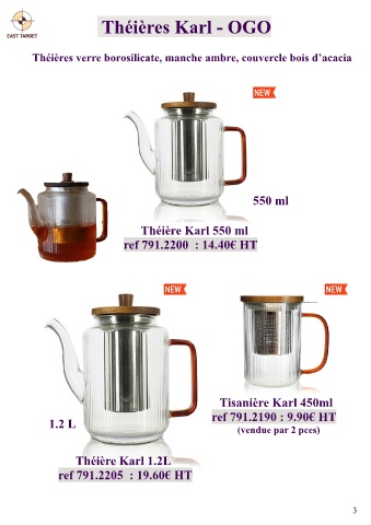 Théières verre borosilicate, manche ambre, couvercle bois d’acacia