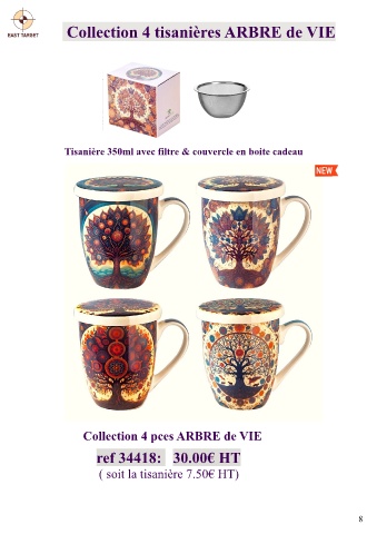 Collection 4 tisanières ARBRE de VIE Tisanière 350ml avec filtre & couvercle en boite cadeau Collection 4 pces ARBRE de VIE ref 34418: 30.00€ HT ( soit la tisanière 7.50€ HT) 8