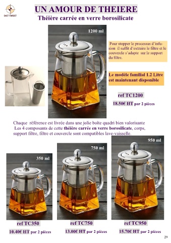 Les 4 composants de cette théière carrée en verre borosilicate, corps,