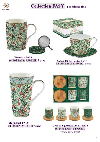 ref 105 FASY: 9.90€ HT/ 3 pces Coffret déjeûner 400ml FASY