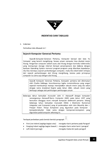 Hanging Indent segitiga bagian bawah ) : mengatur baris selain baris I paragraf