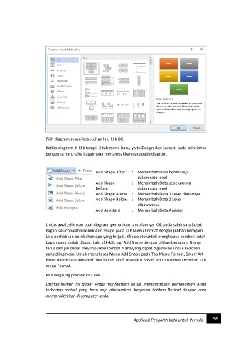 bagan lalu cobalah klik-klik Add Shape pada Tab Menu Format dengan pilihan beragam.
