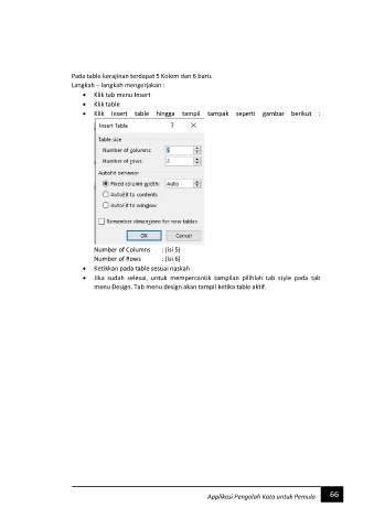 Klik Insert table hingga tampil tampak seperti gambar berikut :