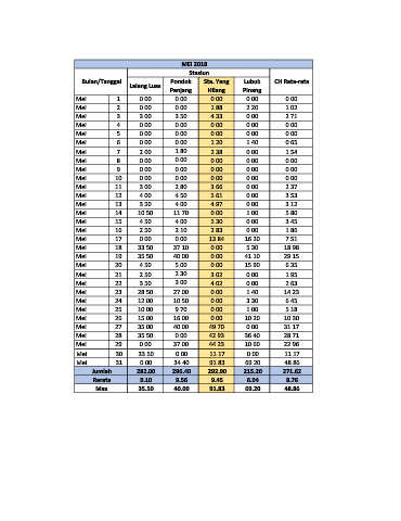 Bulan/Tanggal Pondok Sta. Yang Lubuk CH Rata-rata