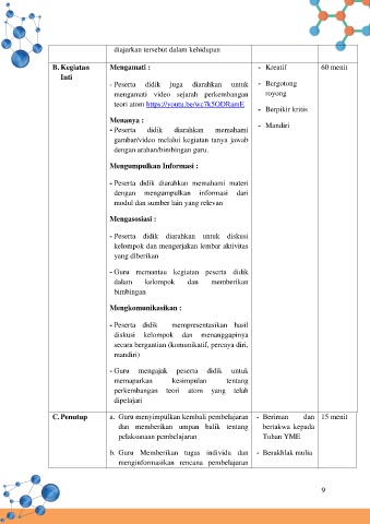 C. Penutup a. Guru menyimpulkan kembali pembelajaran - Beriman dan 15 menit