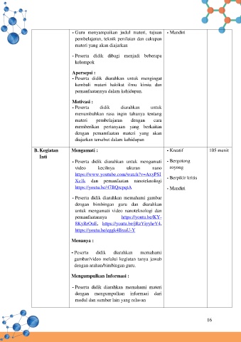 B. Kegiatan Mengamati : - Kreatif 105 menit