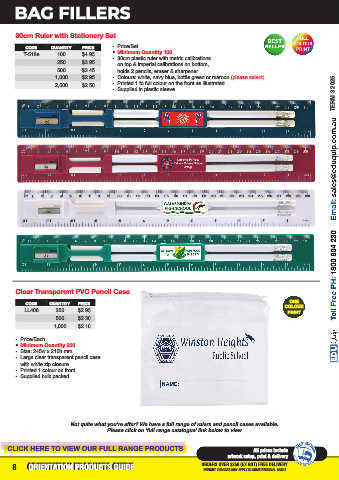 8 ORIENTATION PRODUCTS GUIDE ORDERS OVER $250 (EX GST) FREE DELIVERY