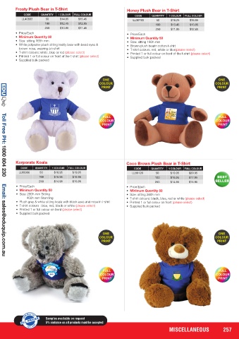 • Plush grey & white sitting koala with black eyes and nose in t-shirt • Printed 1 or full colour on front (please select)