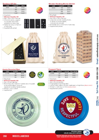 260 MISCELLANEOUS ORDERS OVER $250 (EX GST) FREE DELIVERY