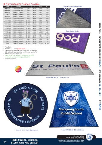 Code: RFM1 1150mm diameter mat Code: PPM150300 1500 x 3000 mm