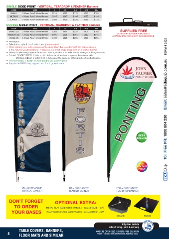 MEDIUM-2S 4 Metre Pole/3 Metre Banner $395 $295 $255 $230 $215 WITH EVERY BANNER PURCHASED