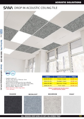 • Acoustic: Absorbs up to 40% of noise (NRC 0.40) SANA-CEL-FR Frost - 8 pack $1,125 + GST