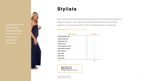Upon joining, Stylists are required to purchase an initial showcase the sample or