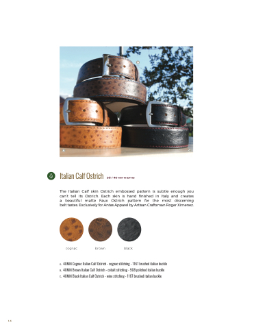 A. 40MM Cognac Italian Calf Ostrich - cognac stitching - 1167 brushed italian buckle