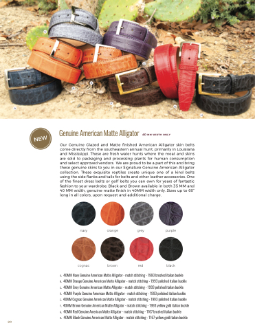 Our Genuine Glazed and Matte finished American Alligator skin belts