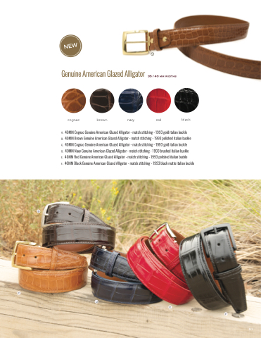 A. 40MM Cognac Genuine American Glazed Alligator - match stitching - 1993 gold italian buckle