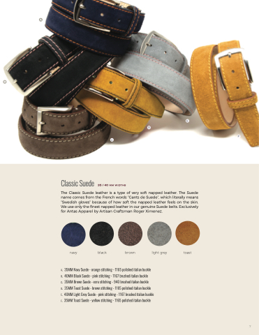 We use only the finest napped leather in our genuine Suede belts. Exclusively