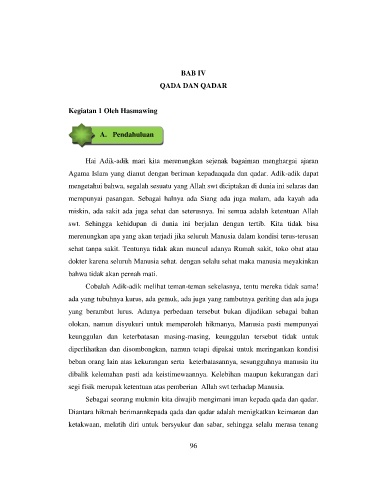 Agama Islam yang dianut dengan beriman kepadaaqada dan qadar. Adik-adik dapat