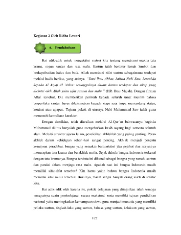 krama, sopan santun dan rasa malu. Santun ialah bertutur lemah lembut dan