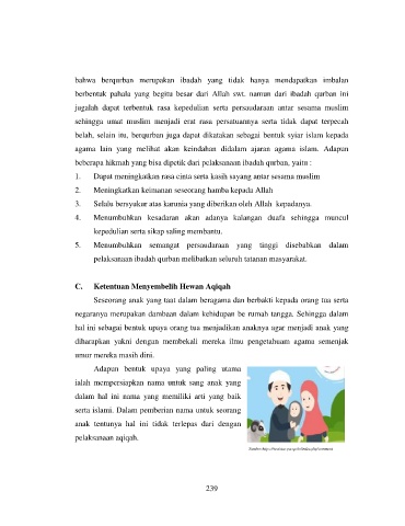 bahwa berqurban merupakan ibadah yang tidak hanya mendapatkan imbalan