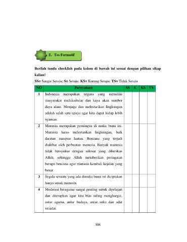 Berilah tanda checklish pada kolom di bawah ini sesuai dengan pilihan sikap