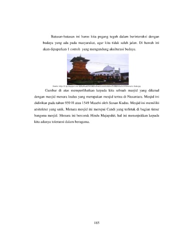 arsitektur yang unik. Menara mesjid ini merupai Candi yang terletak di bagian timur