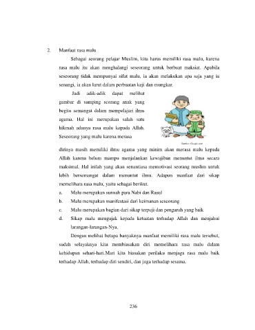 dirinya masih memiliki ilmu agama yang minim akan merasa malu kepada
