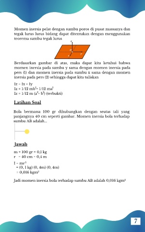 Jadi momen inersia bola terhadap sumbu AB adalah 0,016 kgm                                                                                                        2