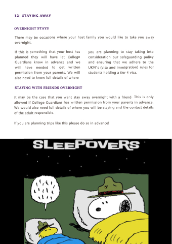 It may be the case that you want stay away overnight with a friend. This is only allowed if College Guardians has written permission from your parents in advance. We would also need full details of where you will be staying and the contact details of the adult responsible.