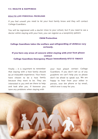 If you feel unwell you need to let your host family know and they will contact College Guardians.