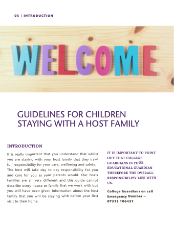 GUIDELINES FOR CHILDREN STAYING WITH A HOST FAMILY