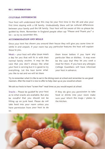 them know before if you have any particular likes or dislikes. It may even be the case that they let you cook a meal for them. If you have any allergies College Guardians will have informed your host in advance.