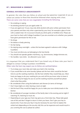 It is important that you understand that if you breach any of these rules your host is obliged to contact College Guardians immediately.