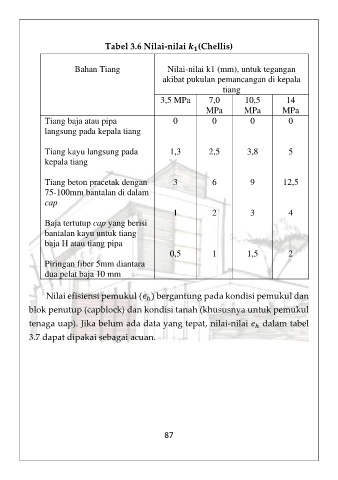 Bahan Tiang Nilai-nilai k1 (mm), untuk tegangan