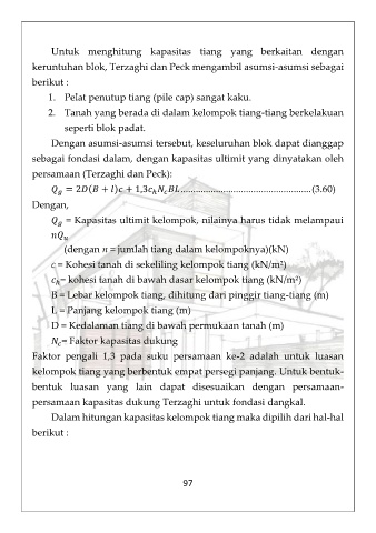 Untuk menghitung kapasitas tiang yang berkaitan dengan