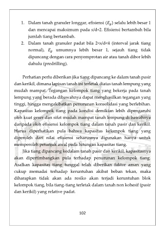 1. Dalam tanah granuler longgar, efisiensi ( ) selalu lebih besar 1