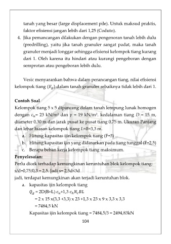 kelompok tiang ( ) dalam tanah granuler sebaiknya tidak lebih dari 1.