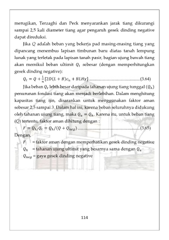 merugikan, Terzaghi dan Peck menyarankan jarak tiang dikurangi