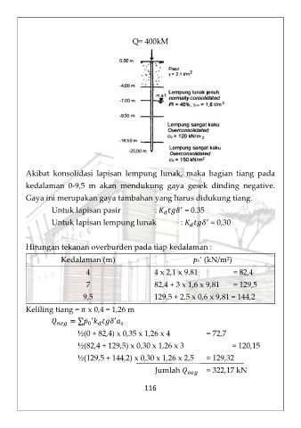 Akibat konsolidasi lapisan lempung lunak, maka bagian tiang pada