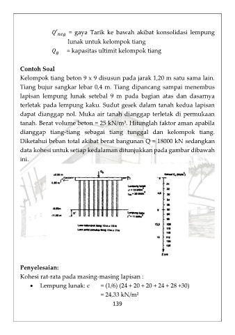 ′ = gaya Tarik ke bawah akibat konsolidasi lempung