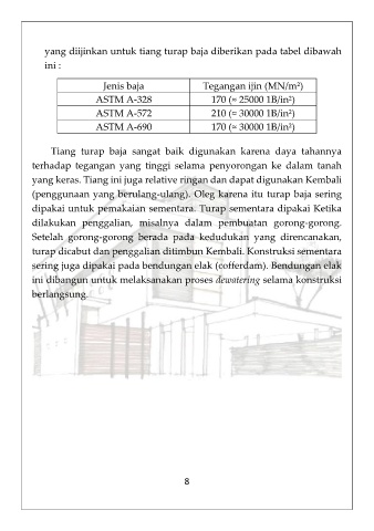 yang diijinkan untuk tiang turap baja diberikan pada tabel dibawah