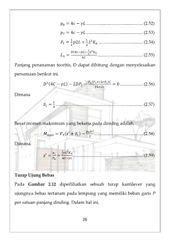 ujungnya bebas tertanam pada lempung yang memiliki beban garis P